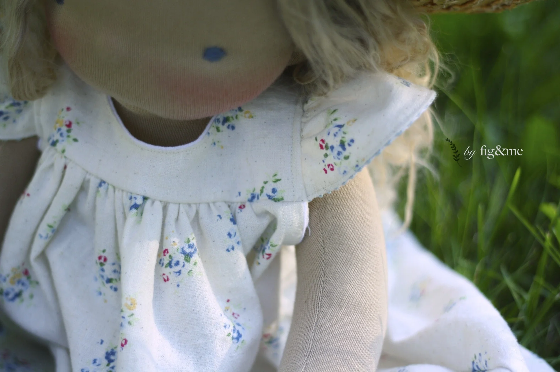 I know better than to ask her to wear shoes, still my motherly brain looks a bit disapprovingly at her bare feet. She takes notice and decides to appease my heart by wearing her merino shawl instead. Perhaps a smart choice, as the morning is still quite not settled in.