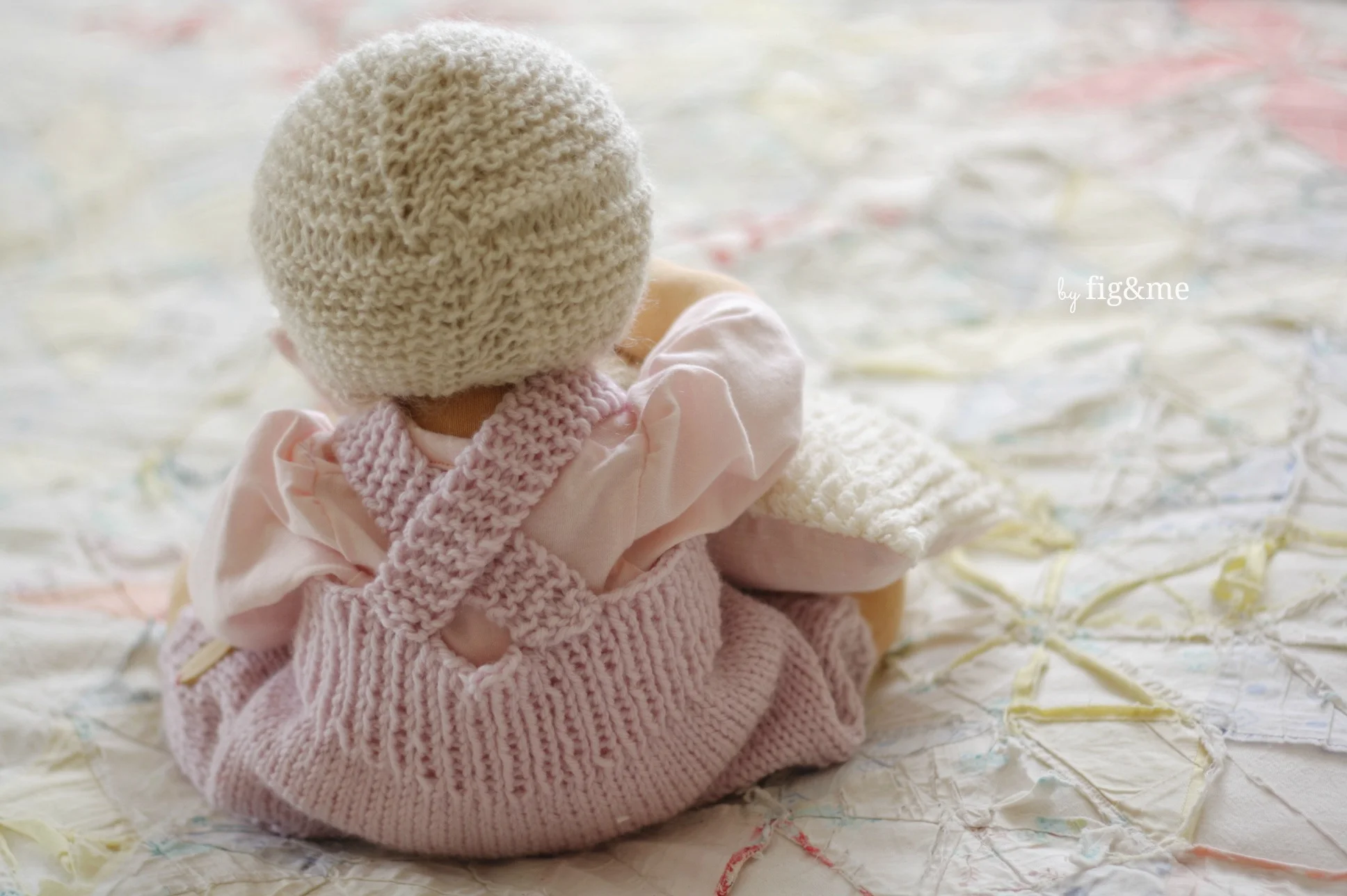 We tufted the mattress, and hand tied the blanket. We puffed the pillow and put snaps on her onesie. Gave her a comfy diaper, and knit her a helmet hat. And she is so happy, she had the longest nap today. Buttons were chosen for her overalls, and now that is all said and done, I am having a hard time stopping from taking another gazillion photos of her, she is just so adorable. I have this huge weakness for babies, and when they are made of cloth and wool, I have to cuddle them too!, just like a real flesh and bone baby.