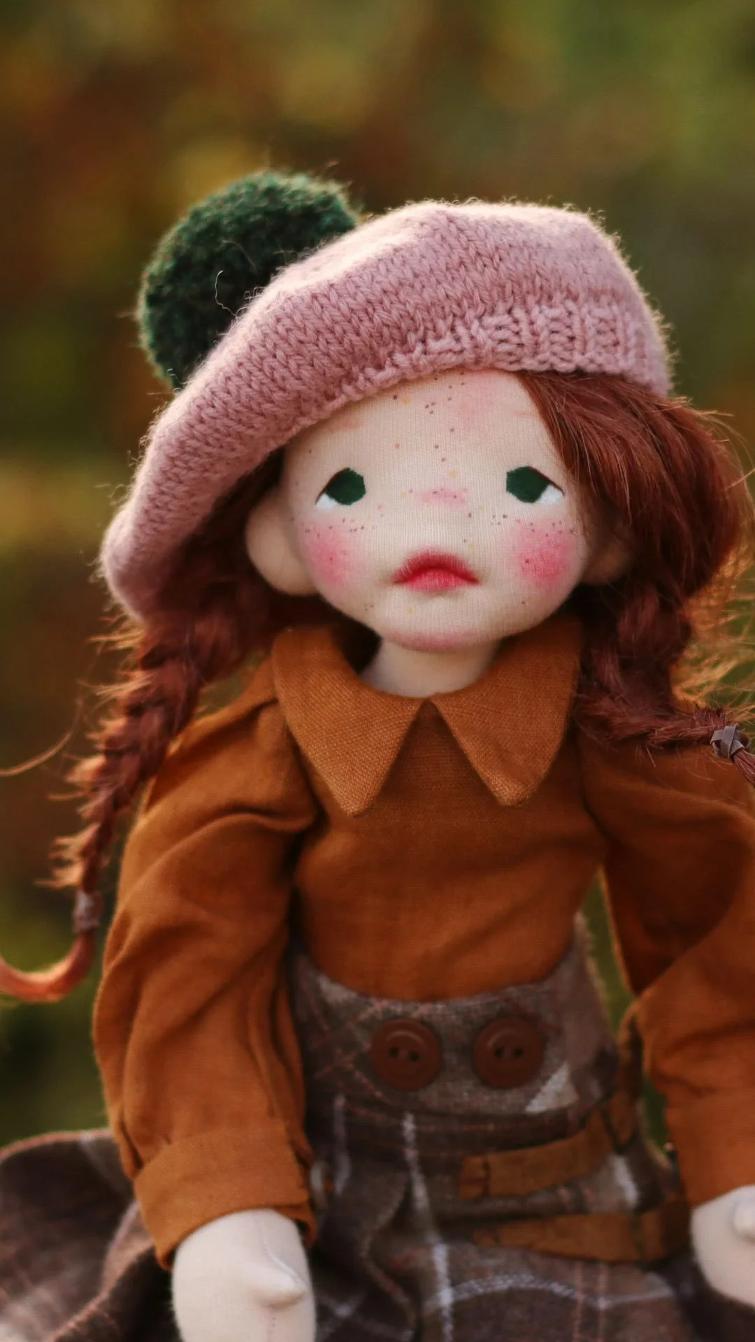 Celestina is a natural fiber art doll (a term that a group of doll makers has recently decided to start using to "define" our work) almost 20" tall. She is made with cotton interlock (sunkissed shade) and stuffed very firmly with wool. She has a wool-sculpted face and design details particular to my Figlette style, which resemble a 5 to 6 year old. She has mohair weft, sewn to a wool cap and embroidered facial features (with a few nose freckles!). Celestina wears cotton undies, Liberty of London classic top (which I tea-dyed to tone down the brightness, Celestina wanted slightly muted tones), a jean skirt, wooly socks, lined velour shoes, a cotton chenille collar and a wool bonnet. Celestina is recommended for a child 7+ or an adult doll collector. Her price is $975 USD plus postage ($50 to the US and Canada with tracking and insurance - International customers will need a revised quote based on preferred shipping method). If you would like to offer your home to this little firecracker, please fill your details in the form below. I will draw a name at random tonight at 7 PM EDT and payment is due then.