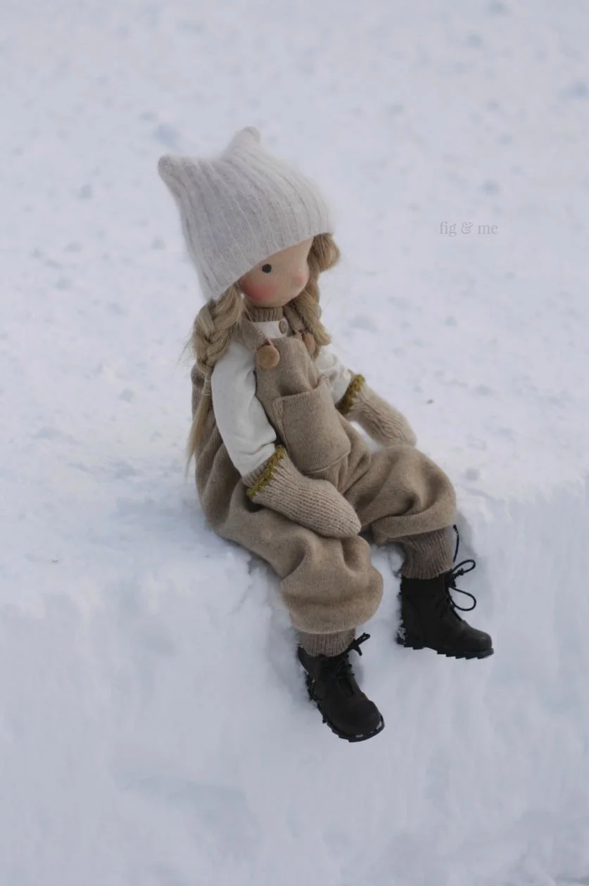 It goes the same for the buttons, elastic, trims, sewing machine, yarn, pins and needles, threads, tape, envelopes, pencils, scissors, paper, wrapping materials, tags, embroidery floss, chair and tables, chalk, iron, knitting needles, measuring tapes, beeswax, and everything else that resides in my studio and plays a part when I am at work. To say that what I do is a one-woman-show is not true. It is the work of many, many kind, devoted, hard working people. That make it possible for me to sit in my studio, with tools at my hands, with resources at my fingertips, with the intention to create a doll. Without them I couldn’t do it.