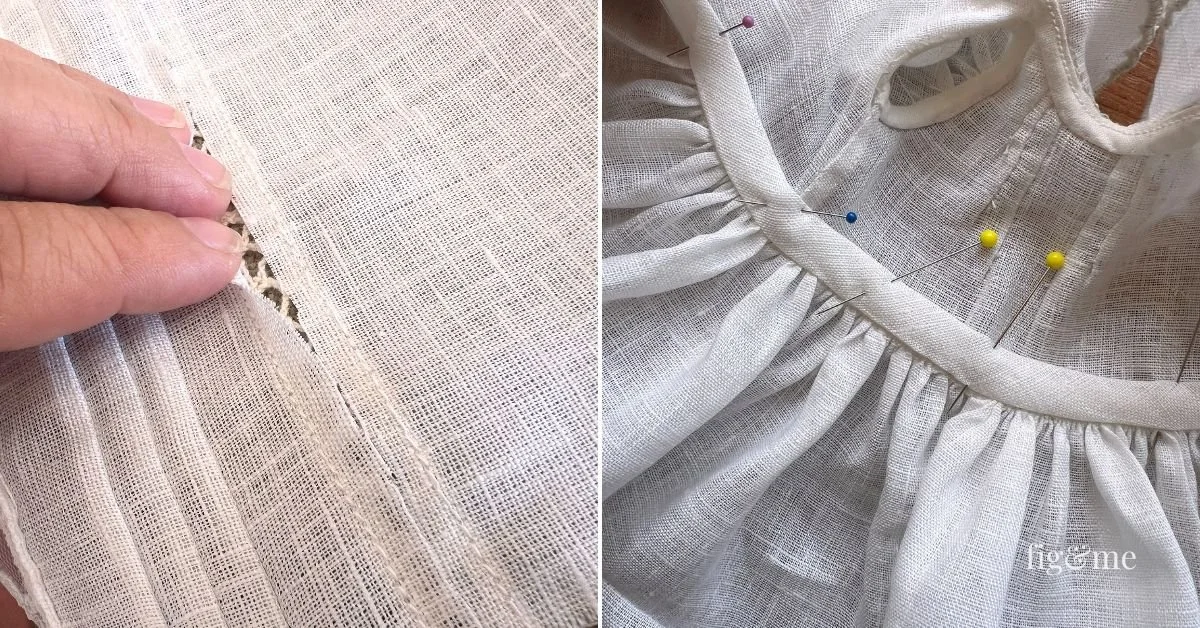 As I mentioned in my last video, I wanted to make one extra dress for my sweet Cora of the Meadows. She already had a gorgeous attire, full of pintucks and hand-sewing details, but I felt she still needed one more dress to fully complete a summer adventure: I present you the heirloom doll dress edition.